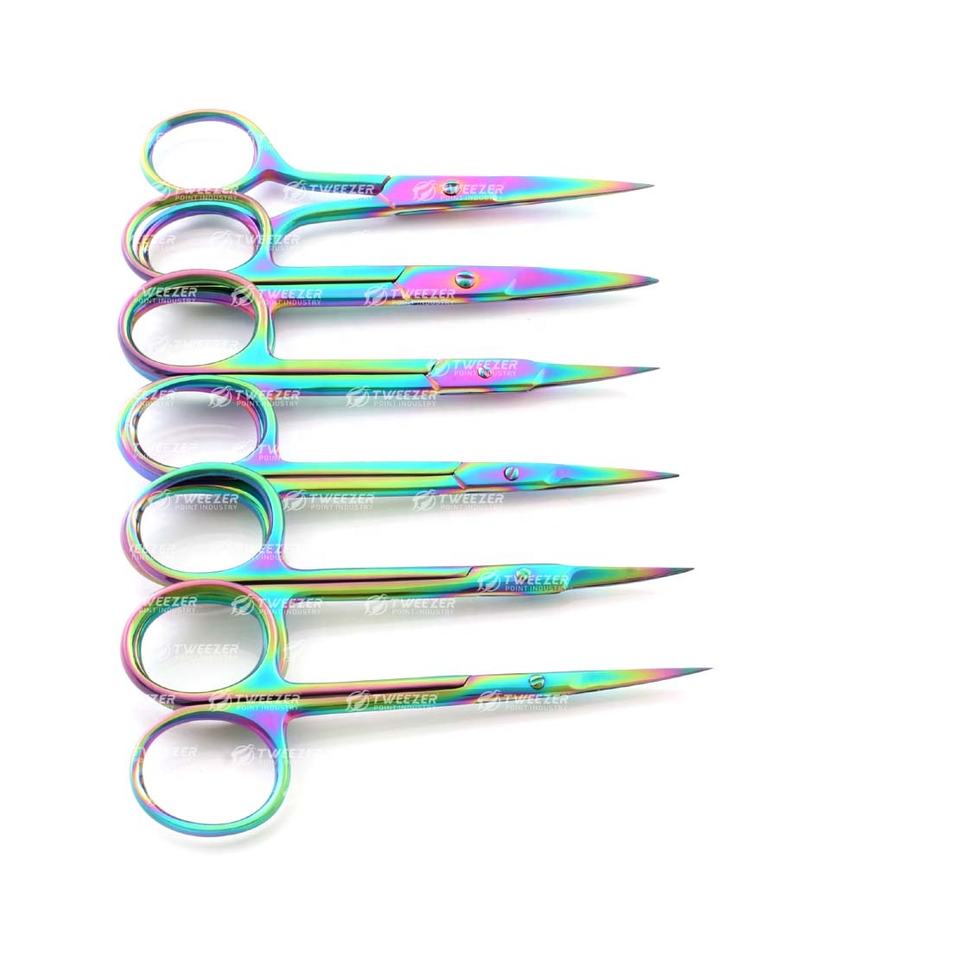 Tijeras multifuncionales para pestañas y cejas, tijeras de maquillaje de acero inoxidable con logotipo personalizado