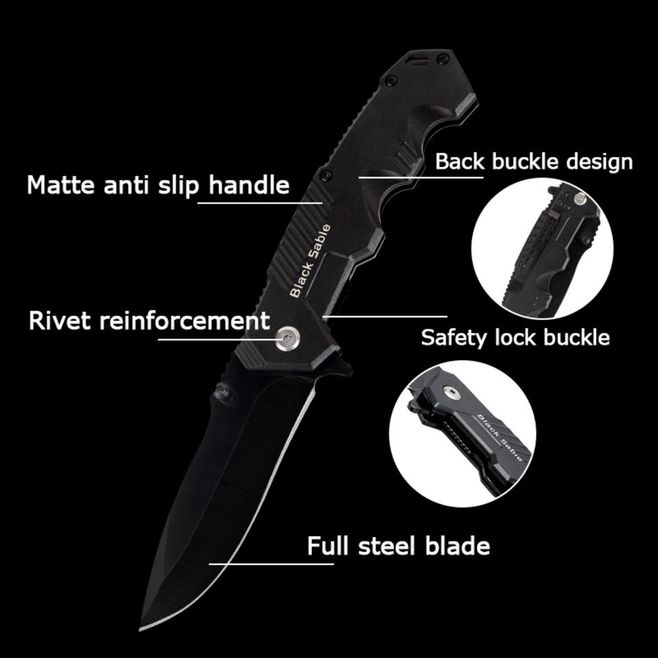 Cuchillo Plegable Multifuncional de Acero Inoxidable de Grado Industrial para Camping con Hoja Afilada, Tamaño de Llavero, Garantía de 1 Año