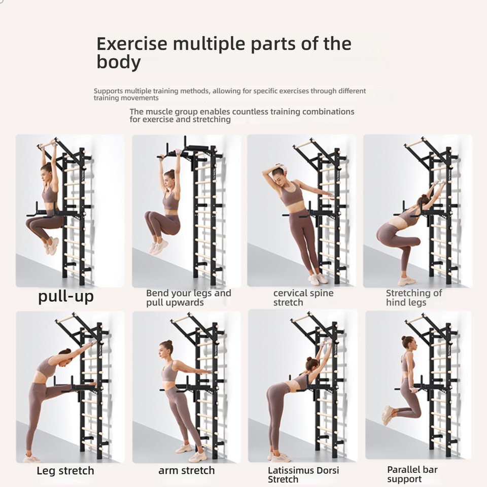 Equipo de Entrenamiento Multifuncional Plegable con Marco de Madera de Costilla para Ejercicios de Piernas y Estiramiento en Interiores, para Sala de Baile de Doble Hombro