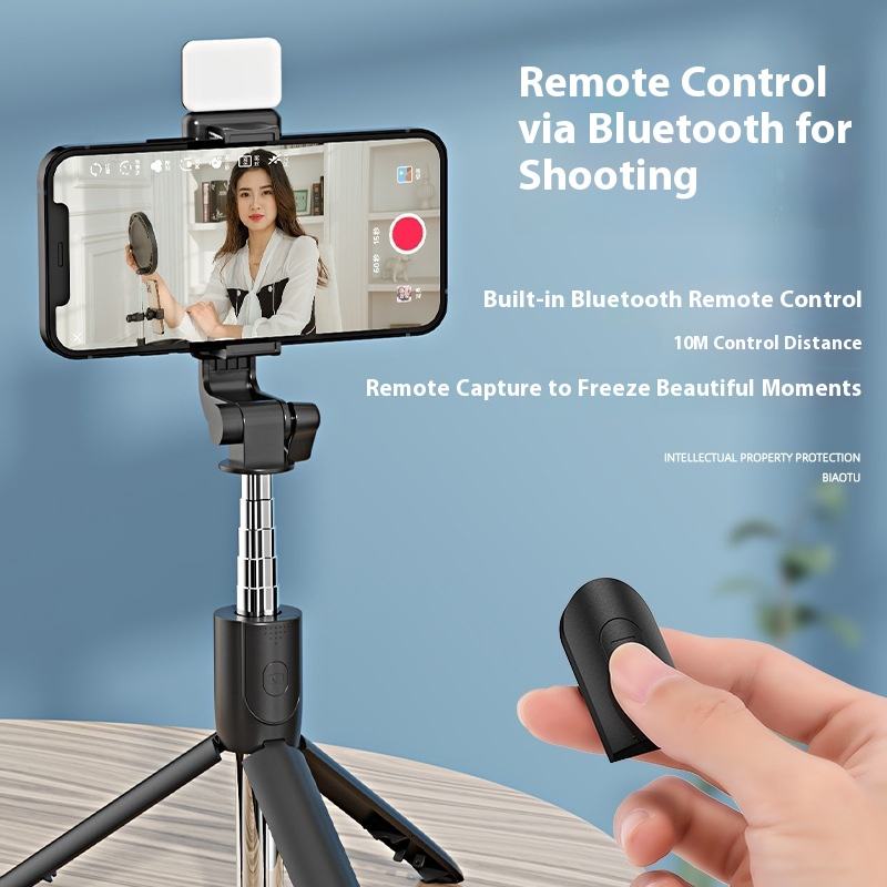 Palo de Selfie Multifuncional Plegable con Rotación de 360° para Fotografía en Vivo por Bluetooth, con Trípode de Plástico Integrado para Móviles