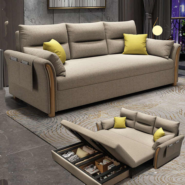 Sofá cama plegable multifuncional de doble uso, sofá cama extraíble de madera maciza con almacenamiento para sala de estar pequeña, estilo nórdico