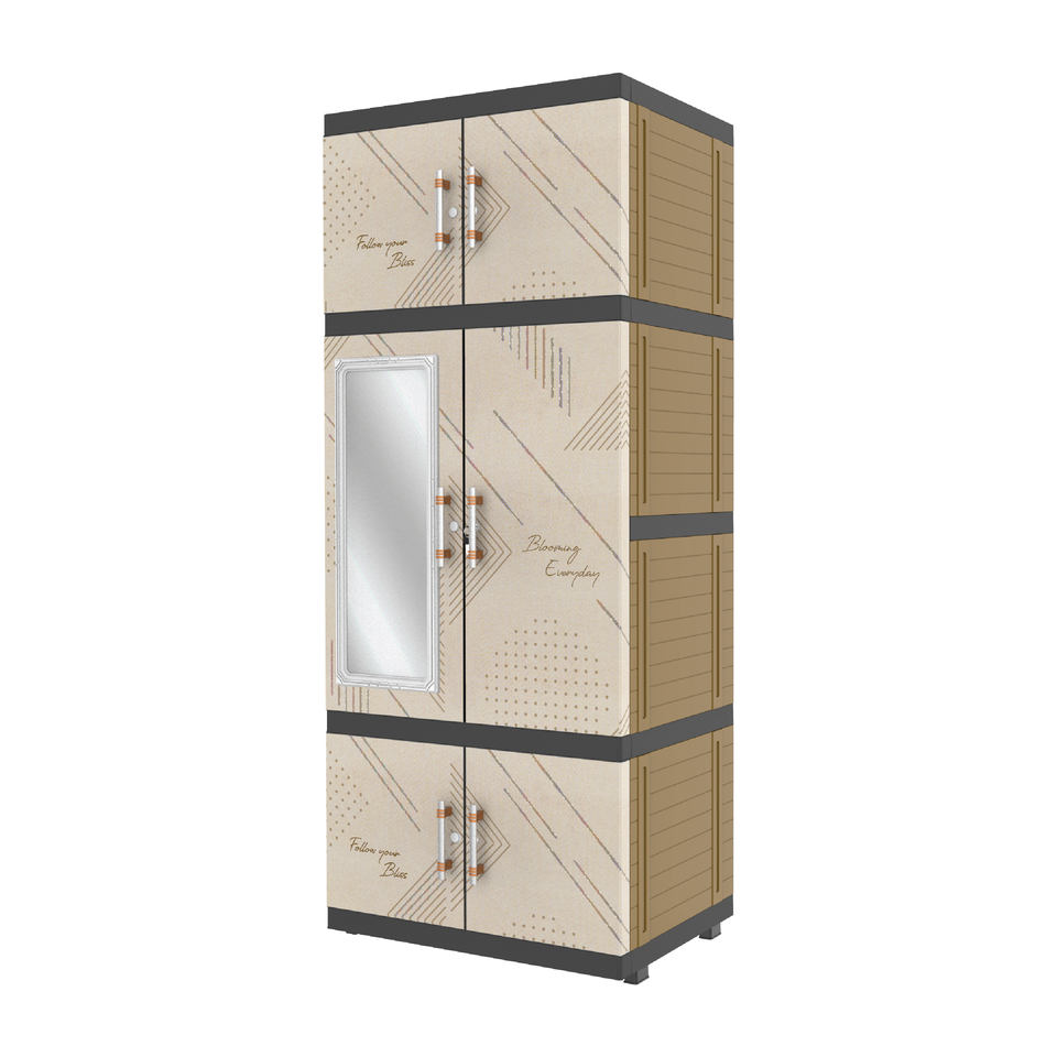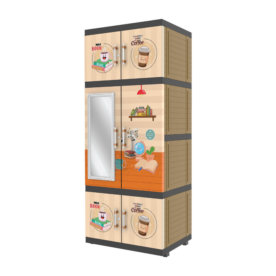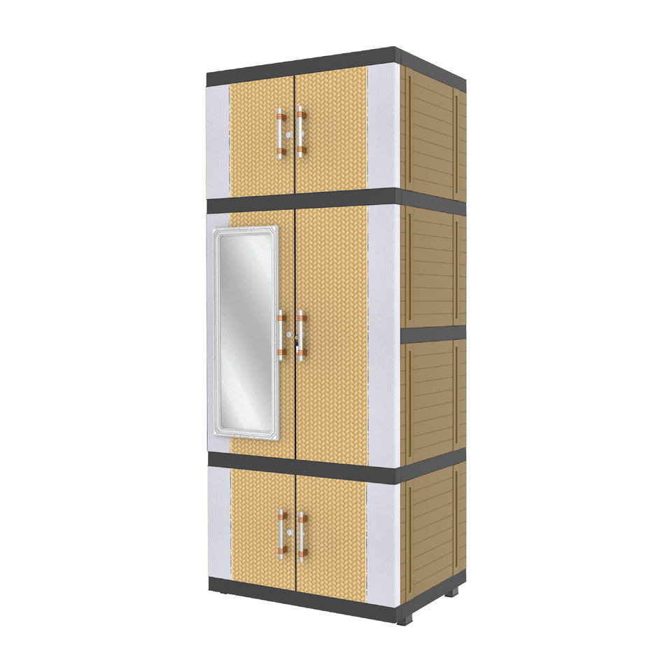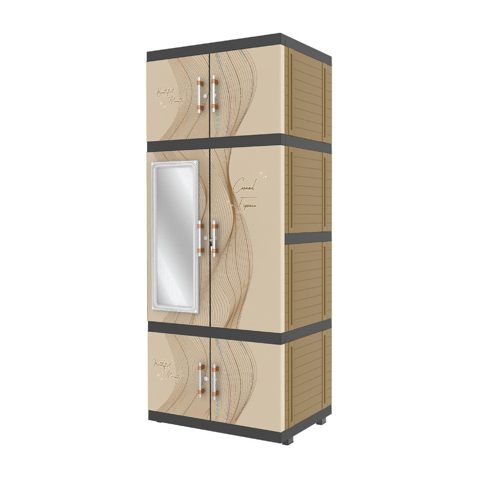 El colgador multifuncional Jumbo Pro combina plástico duradero en color crema y marrón con un espejo incorporado, una solución elegante para la organización.
