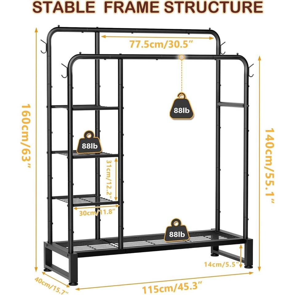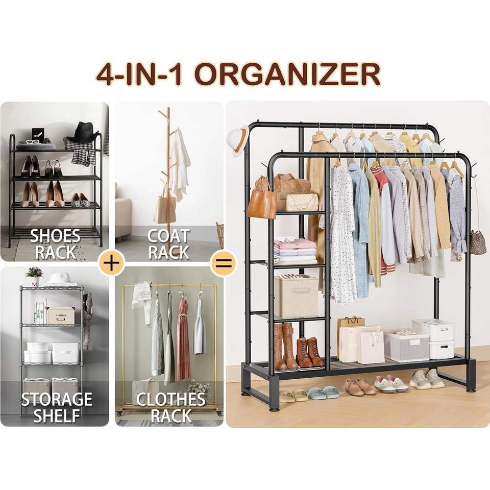 Perchero Multifuncional de Alta Resistencia de 4 Niveles con Doble Barra y Colgador para Ropa, Calidad Premium
