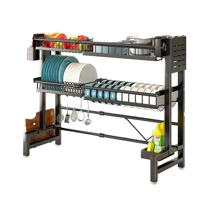 Encimera de cocina multifuncional Estante para platos Olla y escurridor de cuencos Estante de almacenamiento de cubiertos Gadget de almacenamiento de cocina