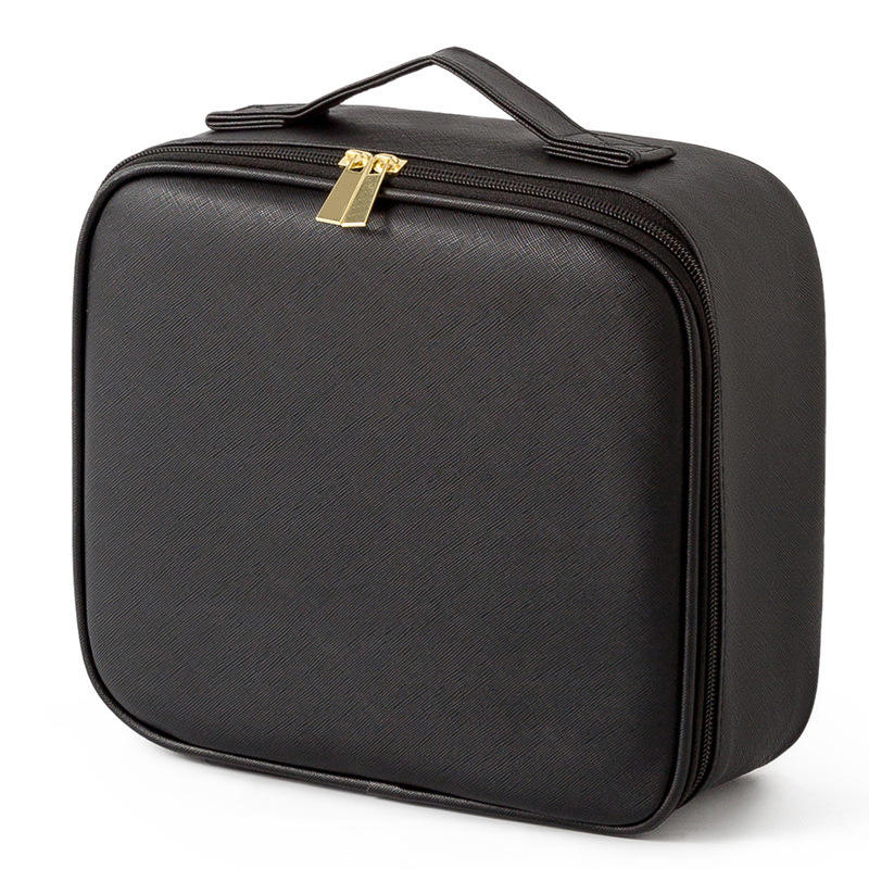 Bolsa de maquillaje multifuncional con espejo y luz, estuche de cosméticos de viaje expandible para almacenamiento en el hogar, material de PVC de color sólido