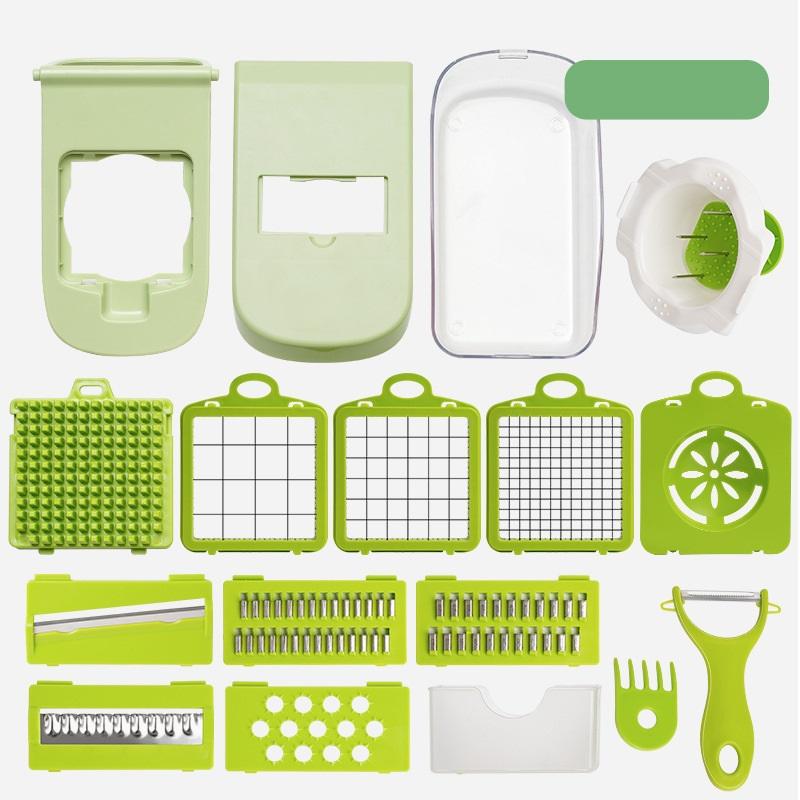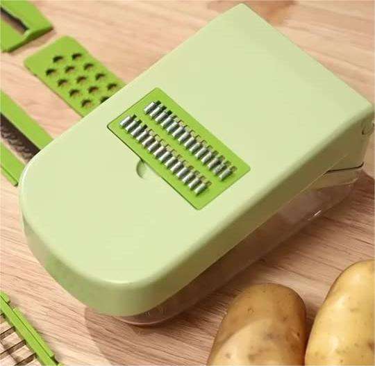 Cortador de Verduras Manual Multifuncional de Acero Inoxidable y Plástico, Picador de Cebolla Seguro, Mandolina, Exprimidor con Recipiente