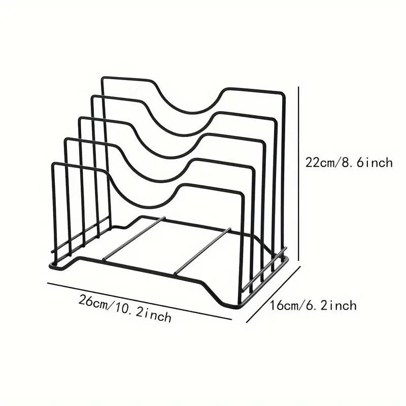 Organizador de Utensilios de Cocina Metálico Multifuncional de Cuatro Niveles, Tipo Vertical, para Gabinetes, Tapas de Ollas y Tablas de Cortar
