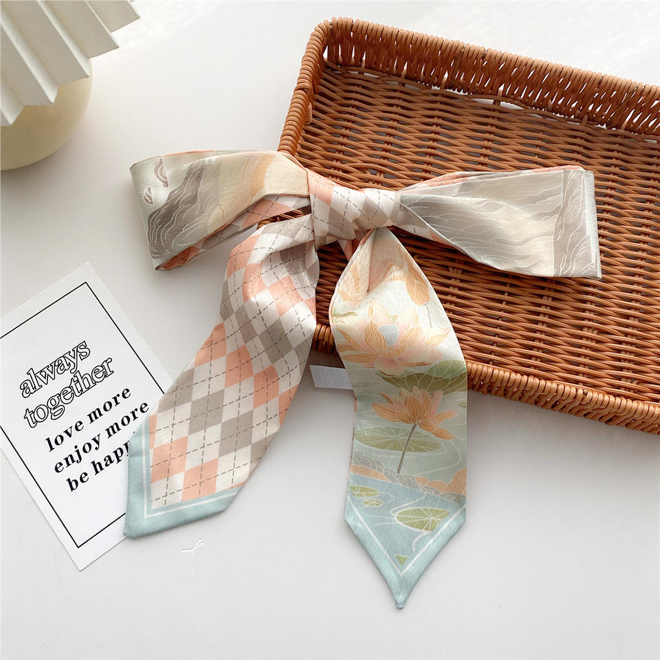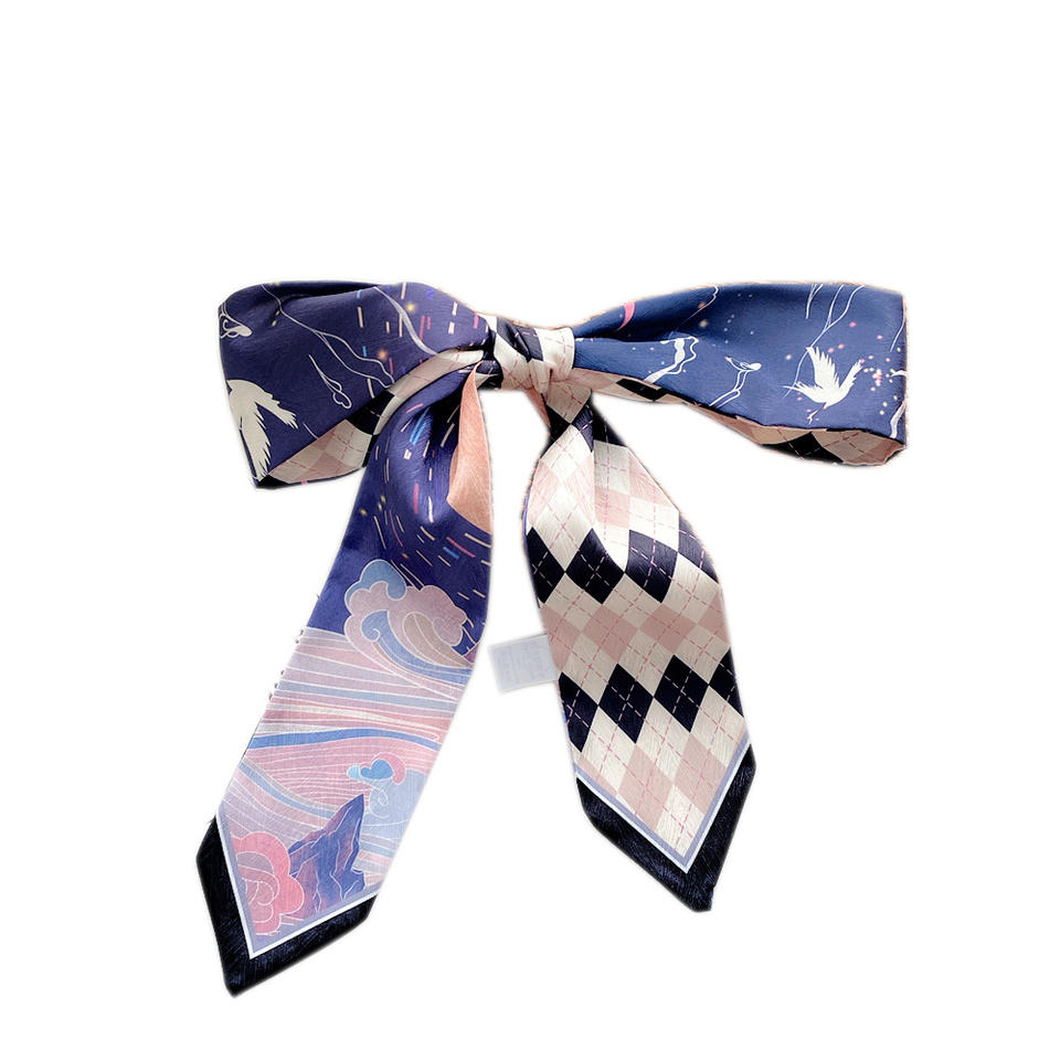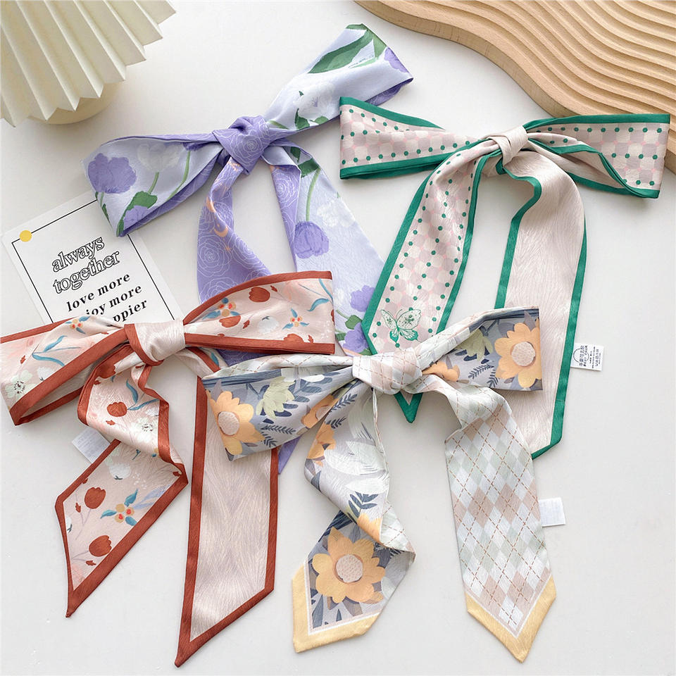 Banda de pelo larga lisa de satén de nuevo estilo multifuncional con patrón geométrico atado en un bolso banda de pelo para mujer
