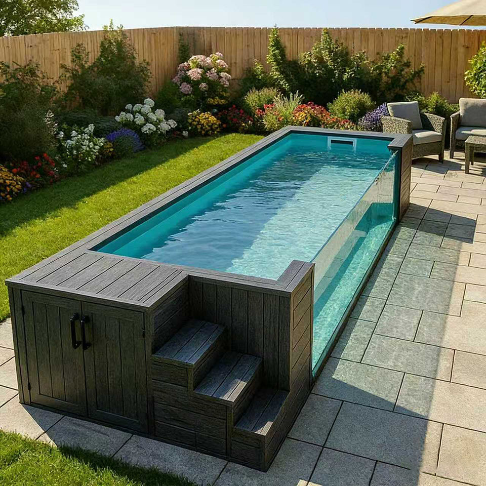 Piscina de Fibra de Vidrio Multifuncional para Exteriores con Bomba Inteligente, Equipo de Piscina Elevada de Alta Calidad