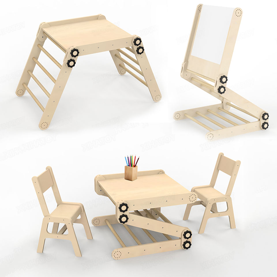 Triángulo de Escalada Multifuncional Ajustable con Piezas de Aprendizaje y Pintura, Escalador de Actividades con Sillas Combinables