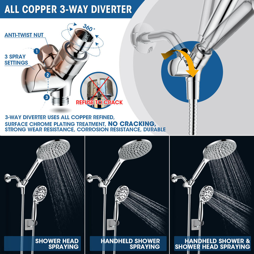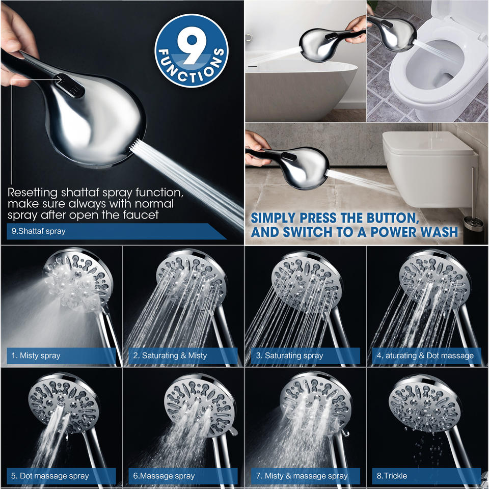 Juego de cabezal de ducha multifuncional, rociador de mano con efecto lluvia, ajustable, cromado, DSS9730