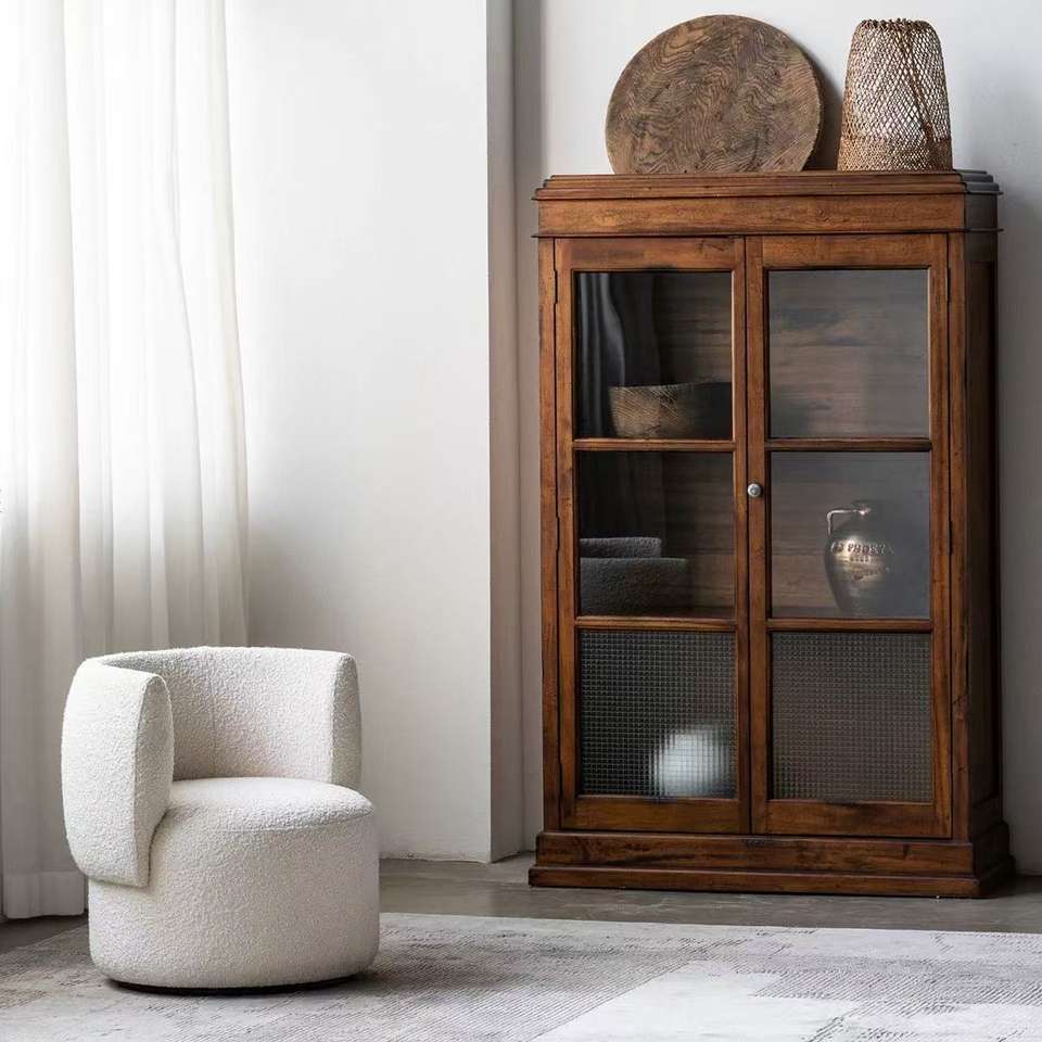 Vitrina Multifuncional de Madera Maciza para Sala de Estar con Puertas de Vidrio, Diseño Moderno y Minimalista, Hecha a Mano, Ahorra Espacio