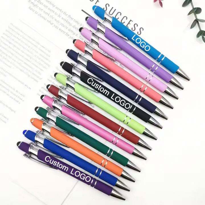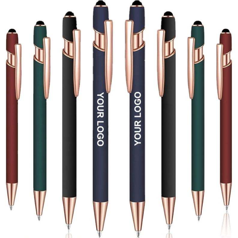 Lápiz Táctil Multifuncional 2 en 1 con Logotipo Personalizado, Bolígrafos Metálicos con Punta de Bola y Detalles en Oro Rosa