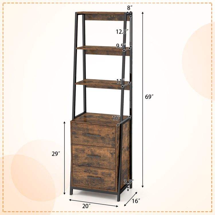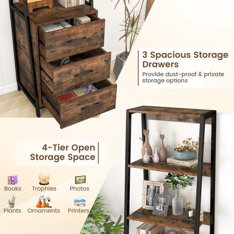 Librero Alto Multifuncional con Estantes Abiertos y Cajones de Almacenamiento