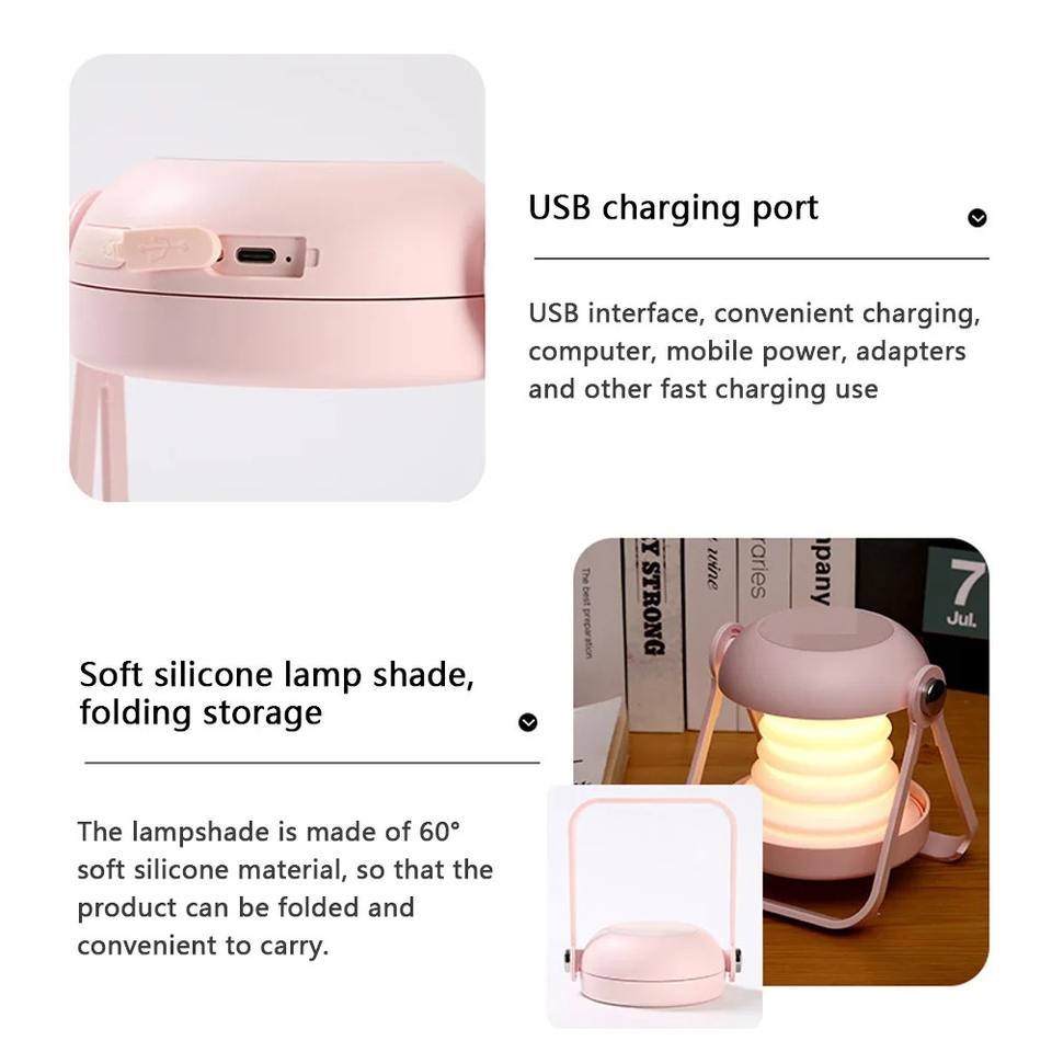 Lámpara de Mesa Multifuncional Telescópica con Luz Nocturna, Espejo Cosmético, Luz LED Portátil para Lectura, Cuidado de los Ojos, Recargable por USB