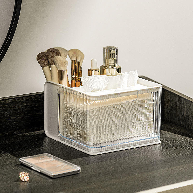 Caja de pañuelos multifuncional, organizador de almacenamiento de escritorio de plástico rectangular con soporte para teléfono para oficina, dormitorio, sala de estar
