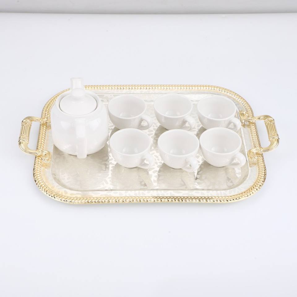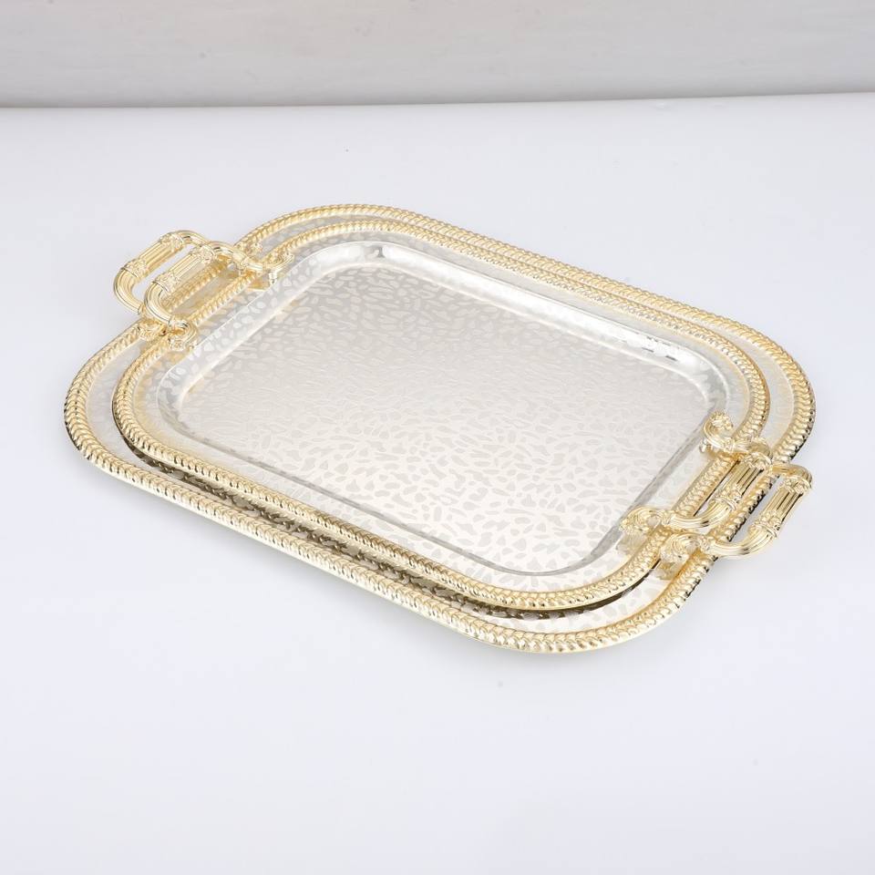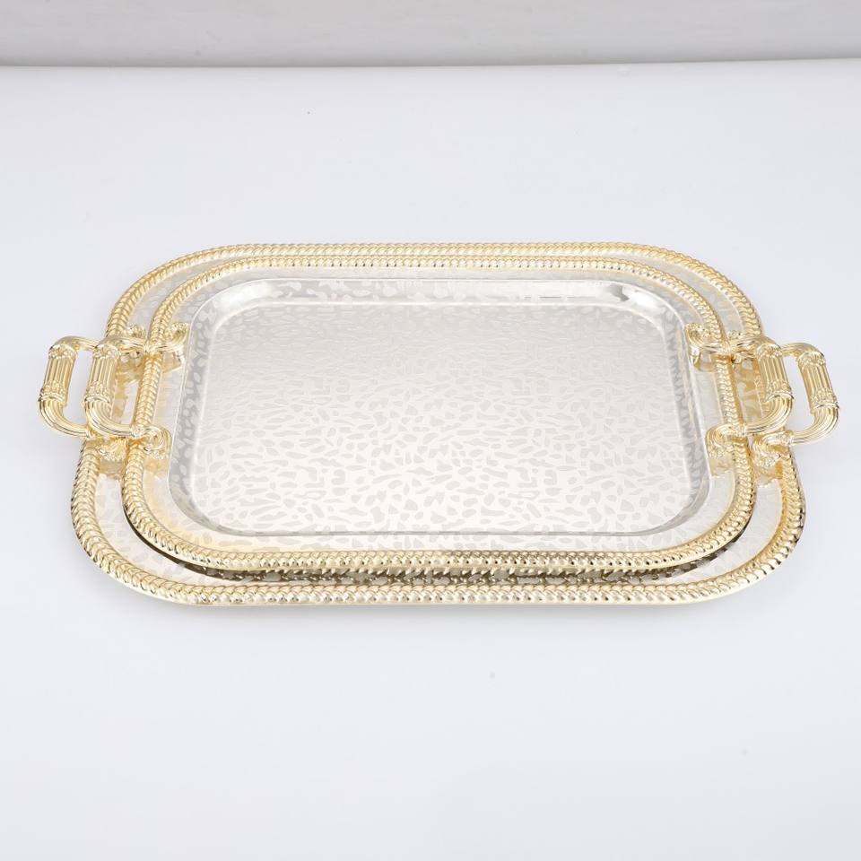 Bandeja rectangular ecológica de Metal tallado en oro y plata de estilo europeo de lujo multifuncional para servir-cumpleaños Año Nuevo