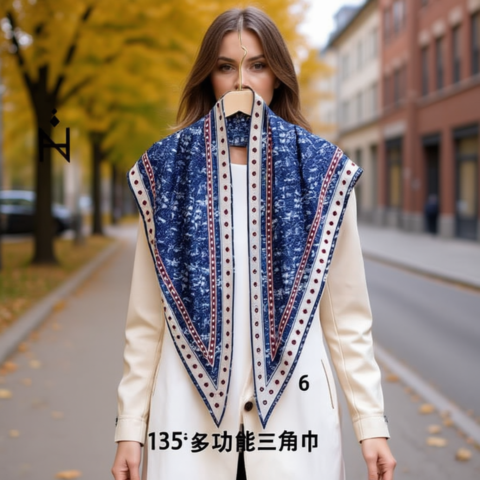 Pañuelo triangular multifuncional de 135x60 cm, accesorio de moda para mujer
