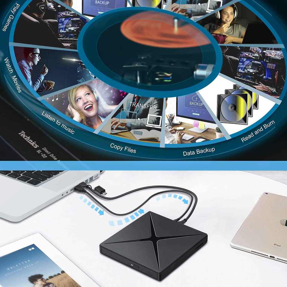 Unidad de DVD Externa Multifuncional Tipo-C, HUB USB 3.0, Unidad de CD/DVD +/-RW Portátil, Grabadora de CD, Unidad de DVD Externa
