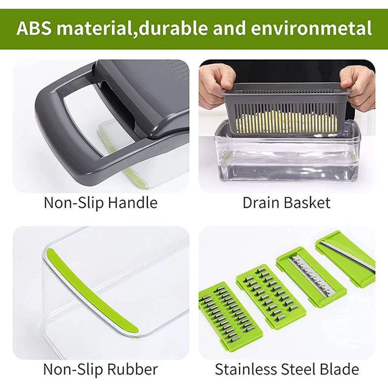 Cortador de Verduras Multifuncional con Cesta, Rebanador de Frutas, Triturador de Patatas, Rallador de Zanahorias, Utensilios de Cocina