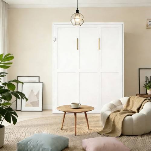 Cama Murphy Vertical Multifuncional Estándar con Estructura Gris, Cama Plegable Ahorradora de Espacio para Sala de Estar