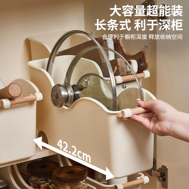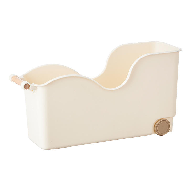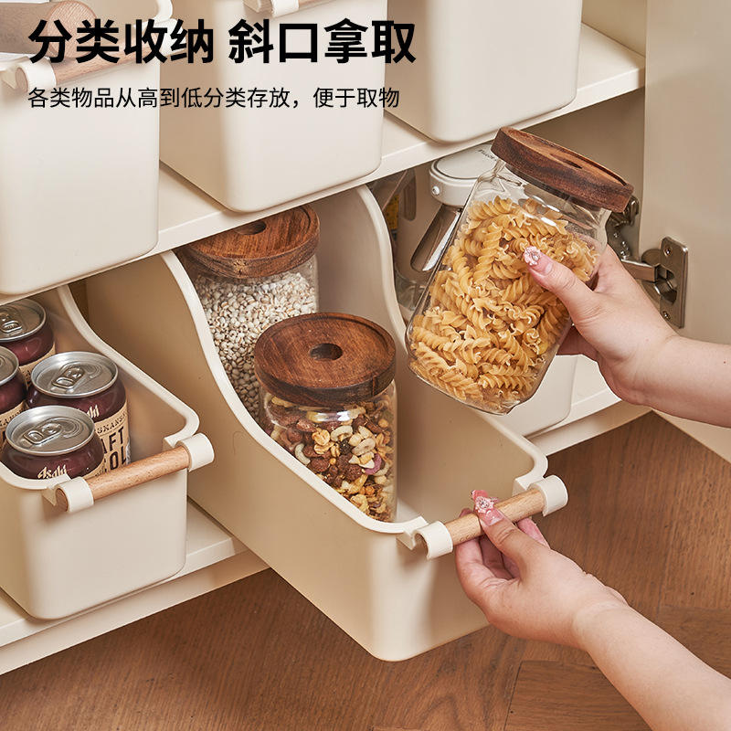 Multifunctional Wheeled Storage Basket Kitchen Rack With Wooden Handle Stackable Organizer Box For Cookware And Dishware