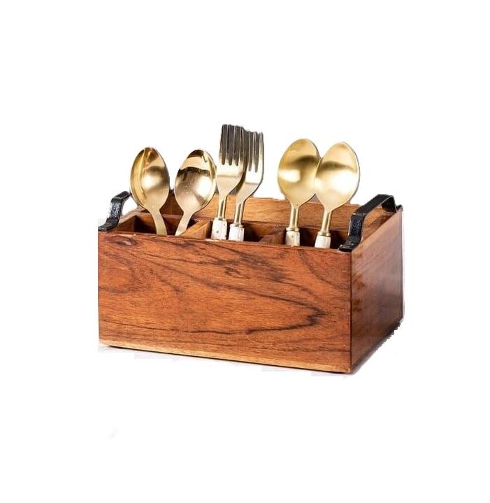Cubiertos de madera multifuncionales Caja de forma rectangular con múltiples compartimentos Utensilios de cocina Artículos de hotel al mejor precio