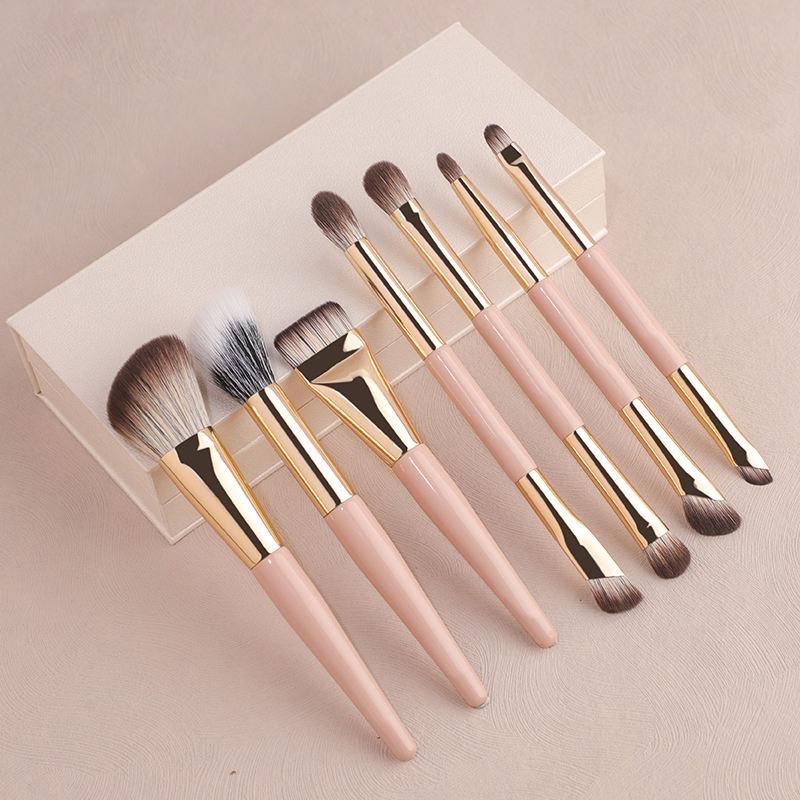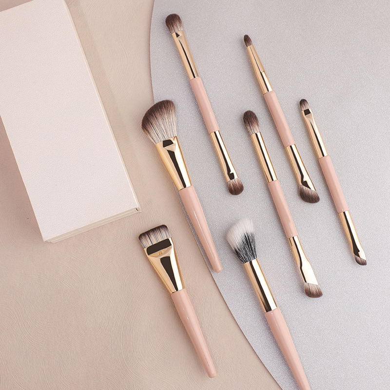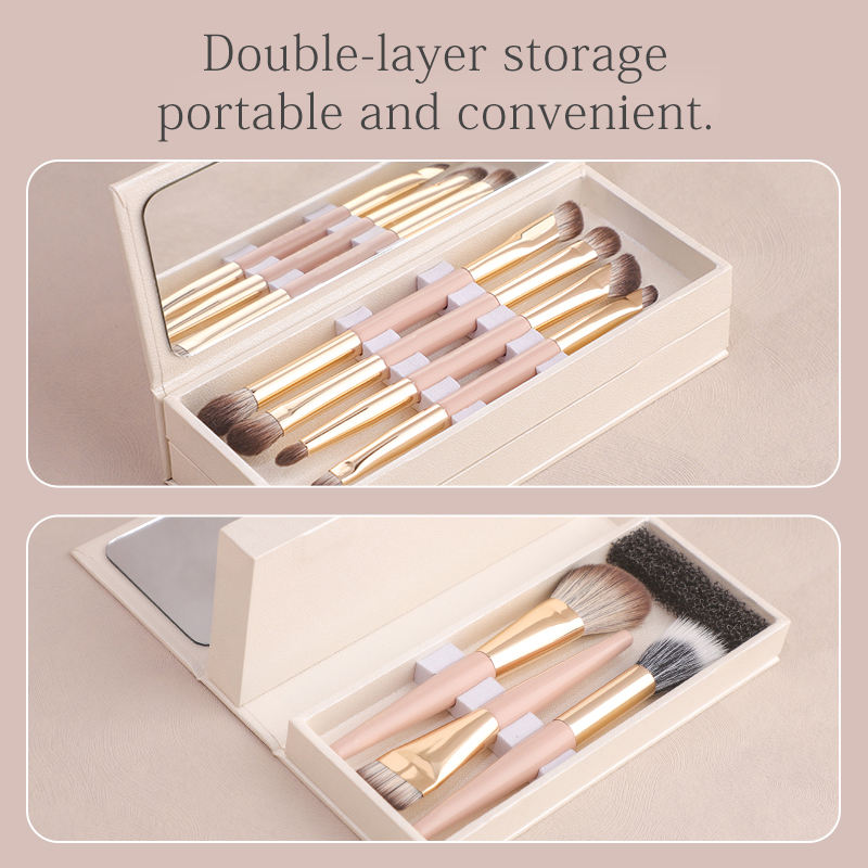 Juego de brochas de maquillaje multifuncionales plegables de doble cabezal, brocha para base, brocha para sombra de nariz, brocha para delineador de ojos, juego completo con estuche de transporte.