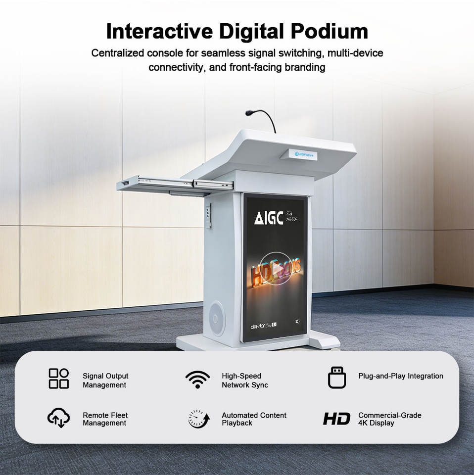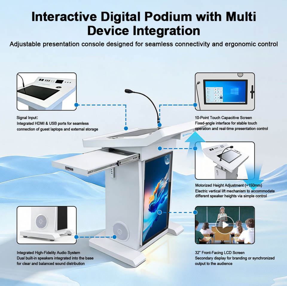 Podio de enseñanza digital interactivo multimedia con pantalla de alta definición y funciones de anotación para uso en el aula