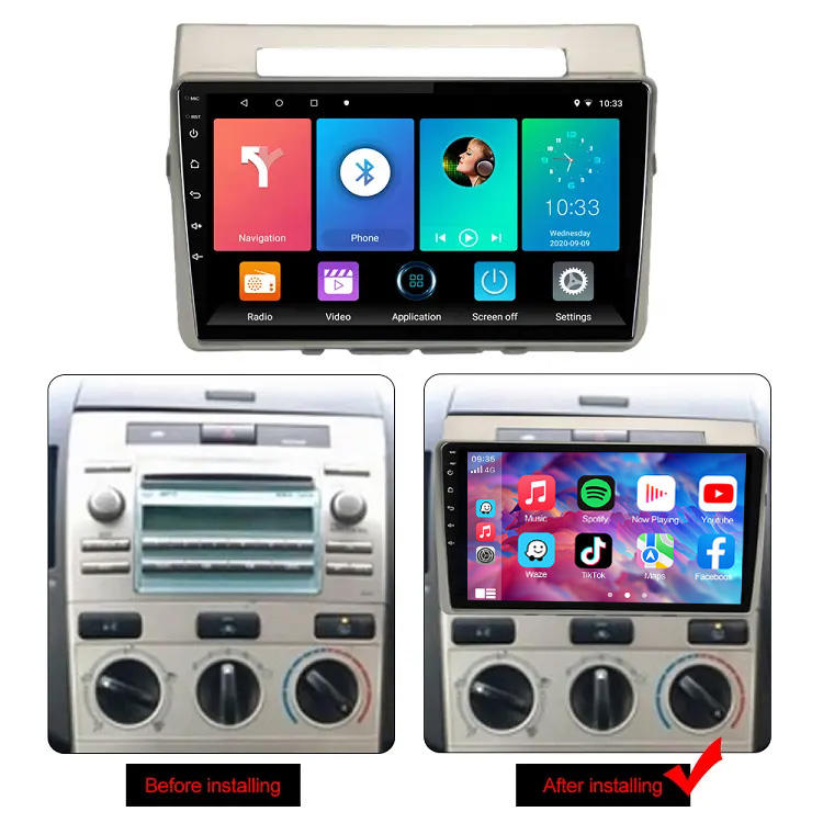 Reproductor Multimedia Wifi navegación Carplay 9 pulgadas pantalla táctil Android Radio de coche para Toyota Corolla Verso 2004-2009