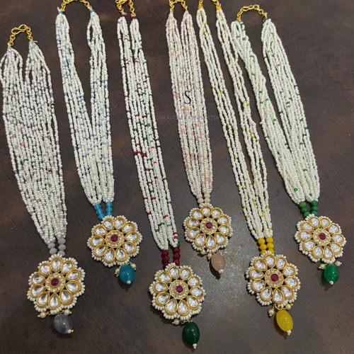 Collares de Flores con Múltiples Diseños Rajasthani, Material Kundan de Latón, Cadena Moti Mala para Bodas, Haldi, Mehndi, Sangeet
