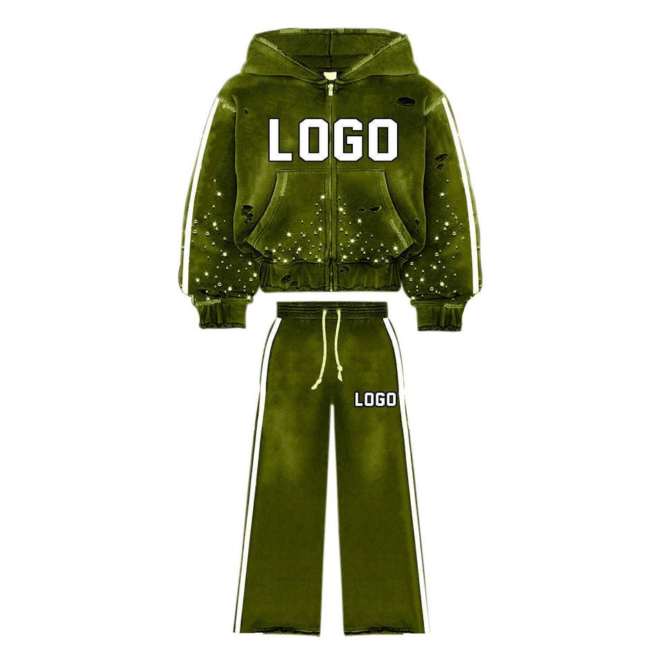 Conjunto de Sudadera con Capucha y Pantalones Deportivos para Hombre, con Cremallera Lateral y Rayas Laterales, en Varios Colores, con Pedrería, Conjunto de 2 Piezas