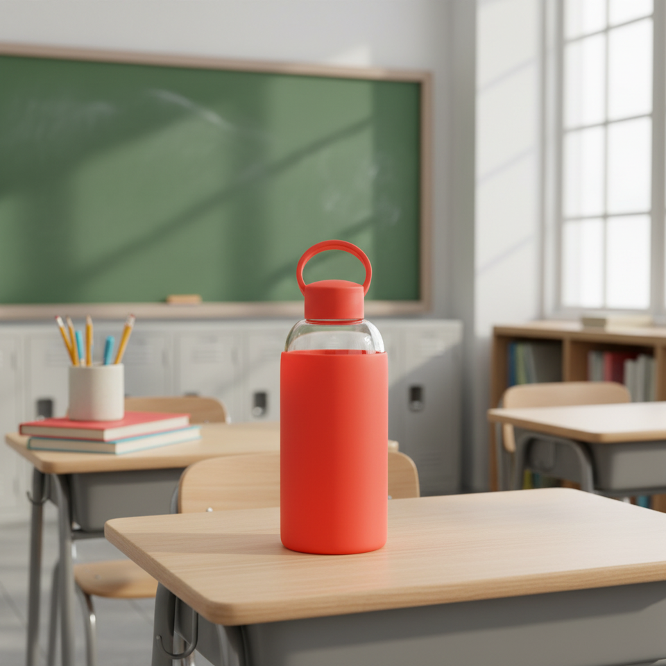 Botella de agua de vidrio azul deportiva portátil de mano de varios colores con funda de silicona