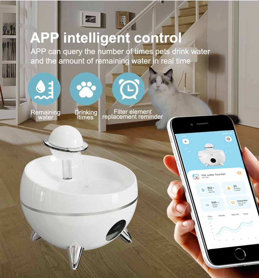 Filtro de filtración múltiple, cuenco de agua dulce eléctrico inteligente para gatos, bomba ultra silenciosa inalámbrica, dispensador de agua para perros y Mascotas