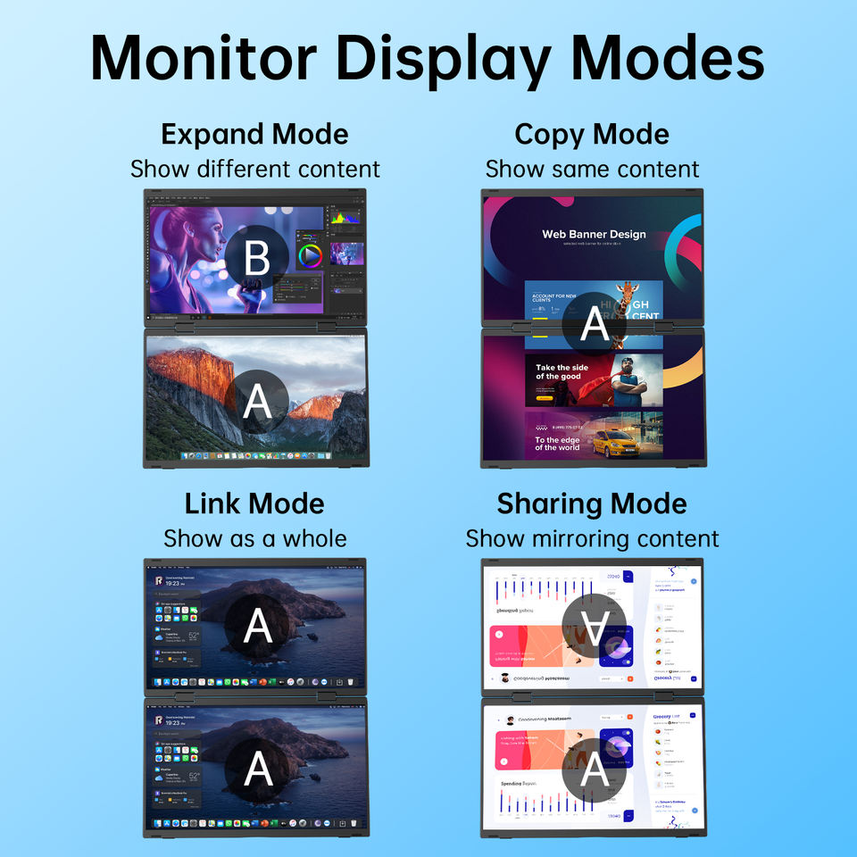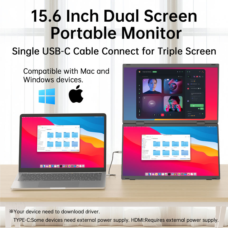 Monitor múltiple Pantalla dual plegable de 180 ° 60Hz 1920*1080P Pantalla externa de 15,6 pulgadas _ & 2. 2 para monitor portátil de tableta