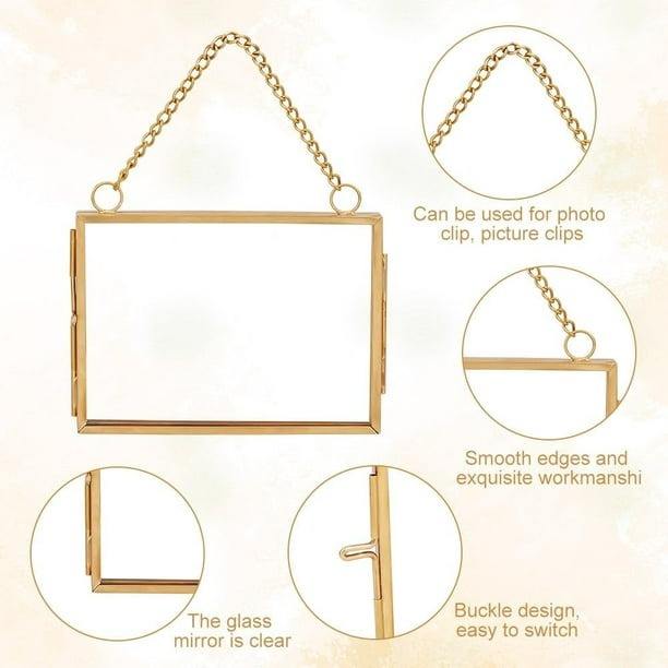 Marco de Fotos Rectangular con Múltiples Flores Prensadas para Boda, Mini Marco de Fotos Colgante para Pared con Acabado Dorado