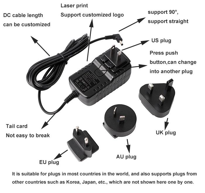 Cargador Intercambiable con Múltiples Enchufes (Reino Unido, UE, EE. UU.) para Luz LED, Adaptador de Corriente de 19V 1.5A 28.5W