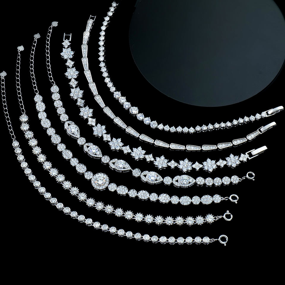 Pulsera de tenis de eslabones ajustable de plata de ley con moissanita VVS engastada, diseño de girasol, varios estilos, moderna, para mujer, regalo para fiesta