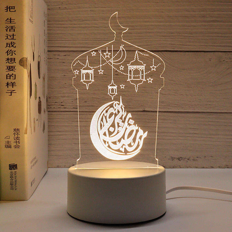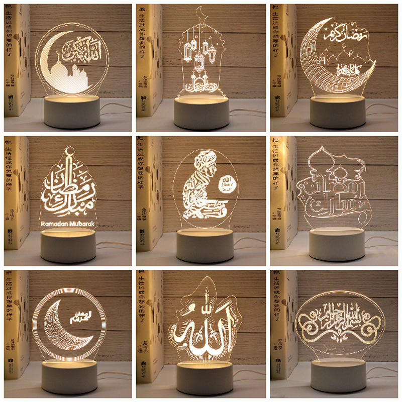 Lámpara decorativa USB 'Eid Mubarak' — varios estilos, adorno para el festival musulmán (Ramadán), luz nocturna LED 3D para hogar, dormitorio y fiestas