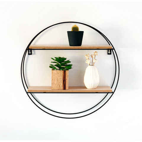 Estante de Pared Redondo de Doble Nivel, Moderno, de Metal y Madera, para Sala de Estar, Hotel, Dormitorio, Uso Decorativo, Estante de Almacenamiento