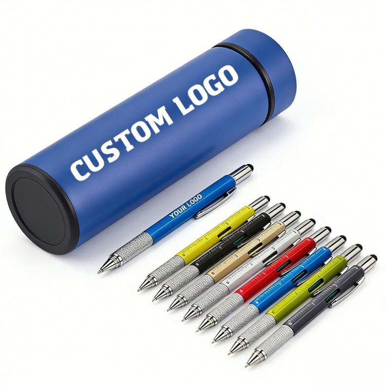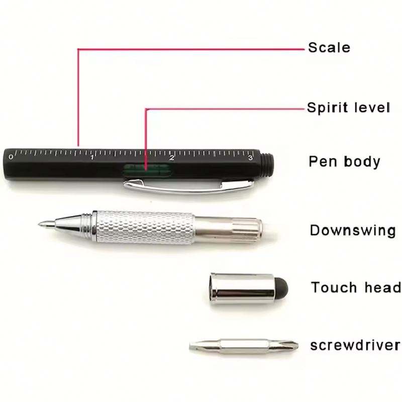 Herramienta Multiusos para el Hogar, Regla, Nivel, Bolígrafo con Destornillador Multifunción y Punta de Bola para Promociones