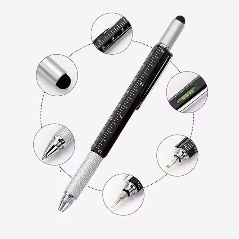 Herramienta Multiusos para el Hogar, Regla, Nivel, Bolígrafo con Destornillador Multifunción y Punta de Bola para Promociones