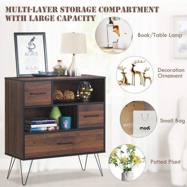 Aparador Multiusos con Patas Metálicas y Cajones para Sala de Estar