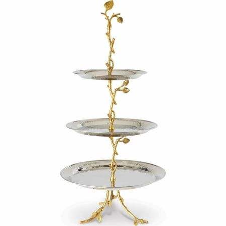 Soporte multiusos de metal de dos niveles para servir pasteles con asa decorativa en forma de anillo para fiestas de té y presentaciones de postres