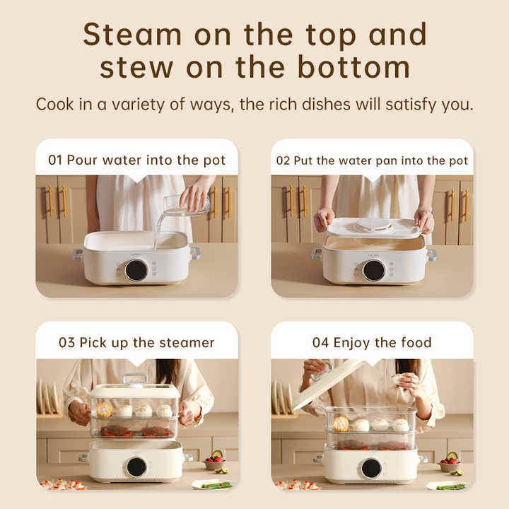 Ollas Eléctricas Multiusos Antiadherentes de 10 l, Calentador de Alimentos Eléctrico Cuadrado Antiadherente, Juego de Ollas Eléctricas de Micro-Presión