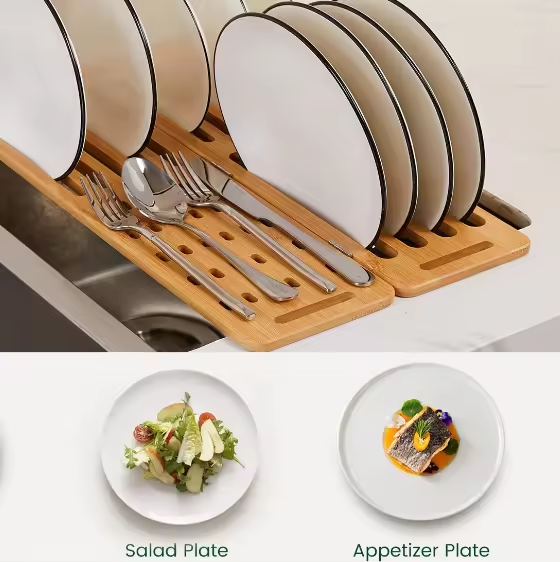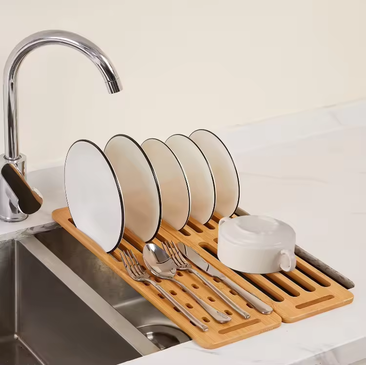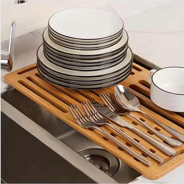 Escurridor de platos plegable de bambú resistente plegable multiusos para ahorrar espacio para Cocina
