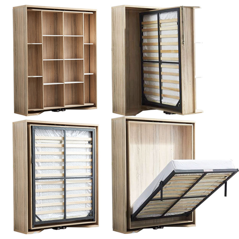 Cama Vertical plegable, mecanismo de cama de pared oculto, giratorio, ahorro de espacio, silencioso