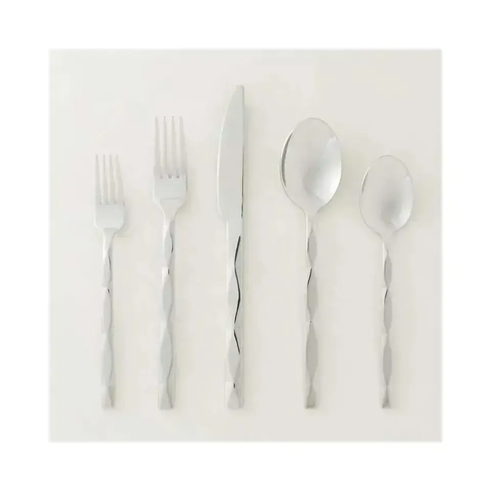 Juego de cubiertos multiusos de acero inoxidable con tenedor, cuchara y cuchillo para las necesidades de cocina y comedor del hogar.