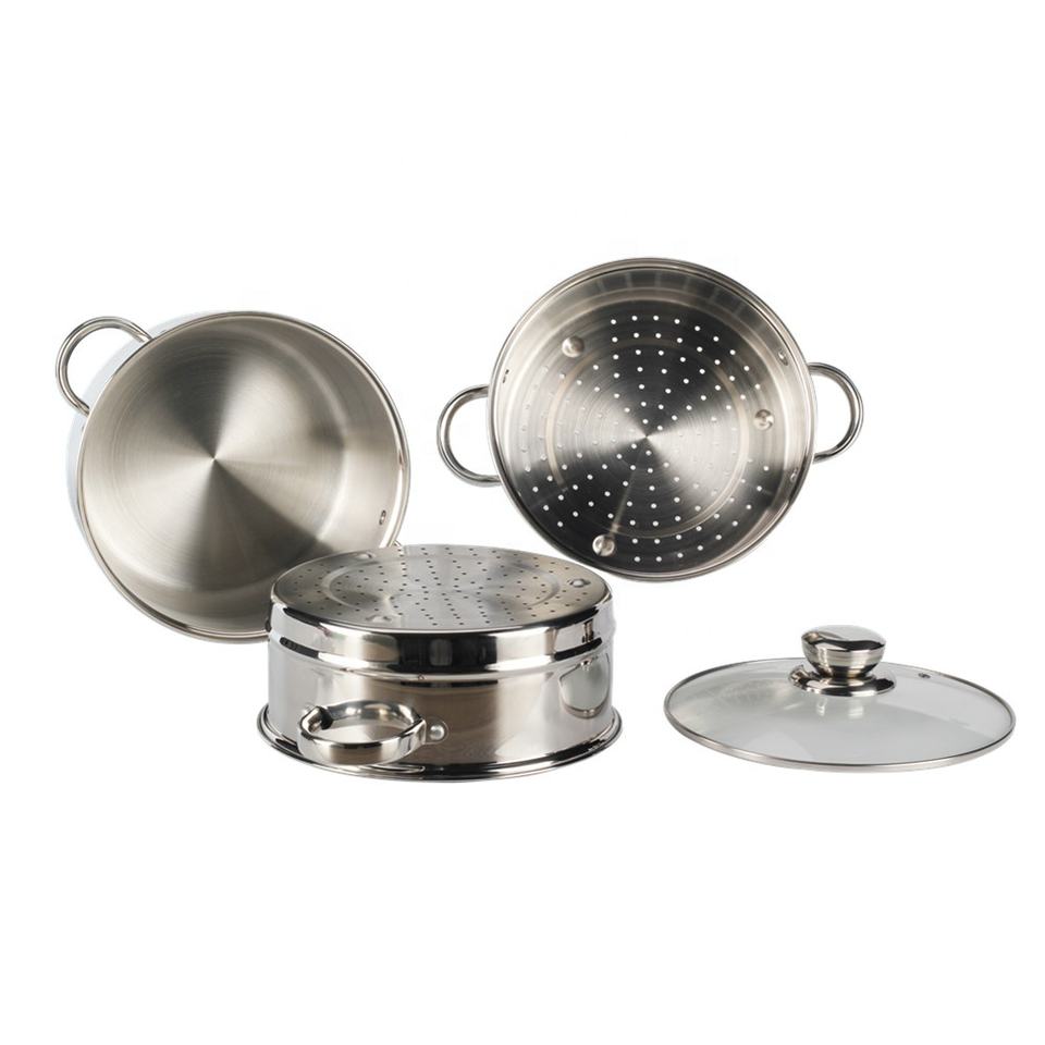 Utensilios de cocina de olla de vapor multiusos con mango para cocinar, vaporizador de acero inoxidable de 3 niveles