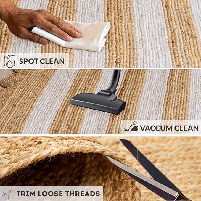 Alfombra rectangular de yute multiusos, duradera, hecha a mano, de fibra natural, para sala de estar, comedor o rincón de relajación.